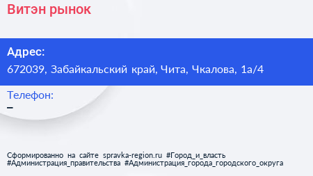 Витэн, рынок по адресу 672039, Забайкальский край, Чита, Чкалова, 1а/4 в дальнейшем Организация, размещена в следующих категориях: