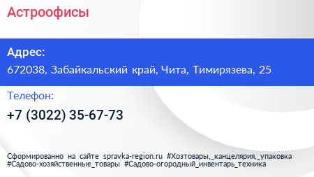 Астроофисы по адресу 672038, Забайкальский край, Чита, Тимирязева, 25 в дальнейшем Организация, размещена в следующих категориях: