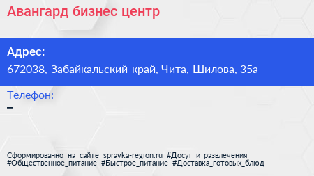 Авангард, бизнес-центр по адресу 672038, Забайкальский край, Чита, Шилова, 35а в дальнейшем Организация, размещена в следующих категориях: