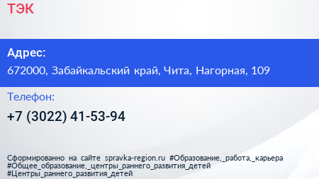 ТЭК по адресу 672000, Забайкальский край, Чита, Нагорная, 109 в дальнейшем Организация, размещена в следующих категориях: