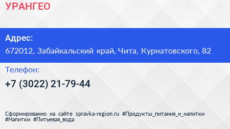 УРАНГЕО по адресу 672012, Забайкальский край, Чита, Курнатовского, 82 в дальнейшем Организация, размещена в следующих категориях: