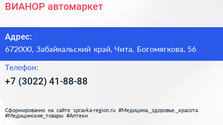 ВИАНОР, автомаркет по адресу 672000, Забайкальский край, Чита, Богомягкова, 56 в дальнейшем Организация, размещена в следующих категориях: