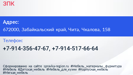 ЗПК по адресу 672000, Забайкальский край, Чита, Чкалова, 158 в дальнейшем Организация, размещена в следующих категориях:
