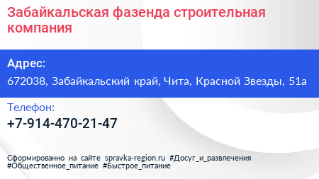 Забайкальская фазенда, строительная компания по адресу 672038, Забайкальский край, Чита, Красной Звезды, 51а в дальнейшем Организация, размещена в следующих категориях: