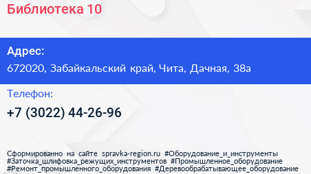 Библиотека №10 по адресу 672020, Забайкальский край, Чита, Дачная, 38а в дальнейшем Организация, размещена в следующих категориях: