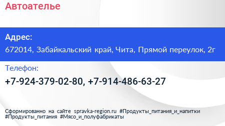 Автоателье по адресу 672014, Забайкальский край, Чита, Прямой переулок, 2г в дальнейшем Организация, размещена в следующих категориях: