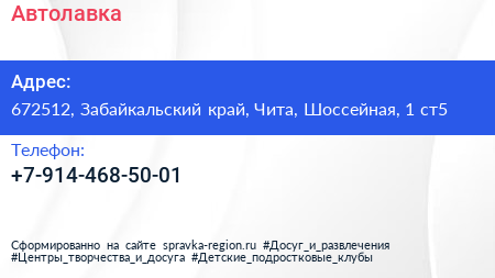 Автолавка по адресу 672512, Забайкальский край, Чита, Шоссейная, 1 ст5 в дальнейшем Организация, размещена в следующих категориях: