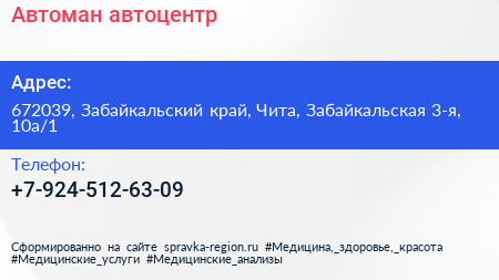 Автоман, автоцентр по адресу 672039, Забайкальский край, Чита, Забайкальская 3-я, 10а/1 в дальнейшем Организация, размещена в следующих категориях: