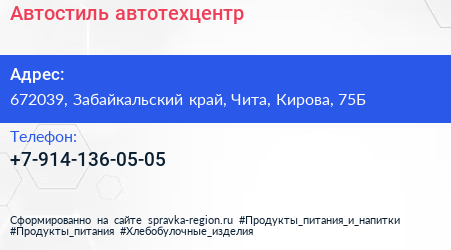 Автостиль, автотехцентр по адресу 672039, Забайкальский край, Чита, Кирова, 75Б в дальнейшем Организация, размещена в следующих категориях: