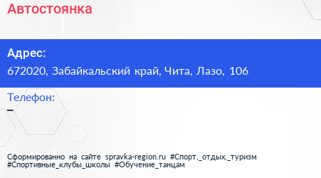 Автостоянка по адресу 672020, Забайкальский край, Чита, Лазо, 106 в дальнейшем Организация, размещена в следующих категориях: