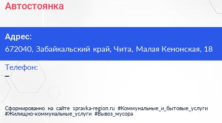 Автостоянка по адресу 672040, Забайкальский край, Чита, Малая Кенонская, 18 в дальнейшем Организация, размещена в следующих категориях: