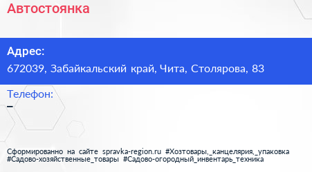 Автостоянка по адресу 672039, Забайкальский край, Чита, Столярова, 83 в дальнейшем Организация, размещена в следующих категориях: