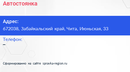 Автостоянка по адресу 672038, Забайкальский край, Чита, Июньская, 33 в дальнейшем Организация, размещена в следующих категориях: