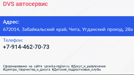 DVS, автосервис по адресу 672014, Забайкальский край, Чита, Угданский проезд, 28а в дальнейшем Организация, размещена в следующих категориях: