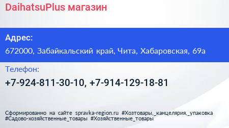DaihatsuPlus, магазин по адресу 672000, Забайкальский край, Чита, Хабаровская, 69а в дальнейшем Организация, размещена в следующих категориях: