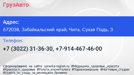 ГрузАвто по адресу 672038, Забайкальский край, Чита, Сухая Падь, 3 в дальнейшем Организация, размещена в следующих категориях: