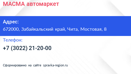 МАСМА, автомаркет по адресу 672000, Забайкальский край, Чита, Мостовая, 8 в дальнейшем Организация, размещена в следующих категориях: