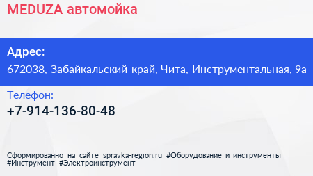 MEDUZA, автомойка по адресу 672038, Забайкальский край, Чита, Инструментальная, 9а в дальнейшем Организация, размещена в следующих категориях: