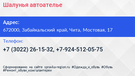 Шалунья, автоателье по адресу 672000, Забайкальский край, Чита, Мостовая, 17 в дальнейшем Организация, размещена в следующих категориях: