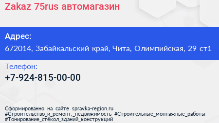 Zakaz.75rus, автомагазин по адресу 672014, Забайкальский край, Чита, Олимпийская, 29 ст1 в дальнейшем Организация, размещена в следующих категориях: