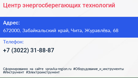 Центр энергосберегающих технологий по адресу 672000, Забайкальский край, Чита, Журавлёва, 68 в дальнейшем Организация, размещена в следующих категориях: