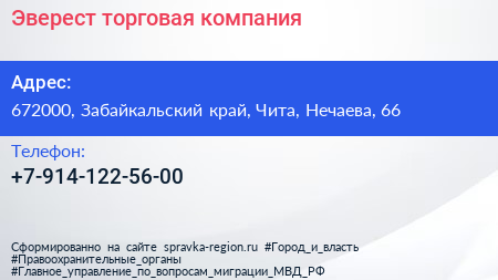 Эверест, торговая компания по адресу 672000, Забайкальский край, Чита, Нечаева, 66 в дальнейшем Организация, размещена в следующих категориях: