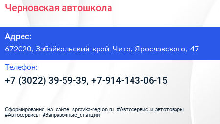 Черновская автошкола по адресу 672020, Забайкальский край, Чита, Ярославского, 47 в дальнейшем Организация, размещена в следующих категориях: