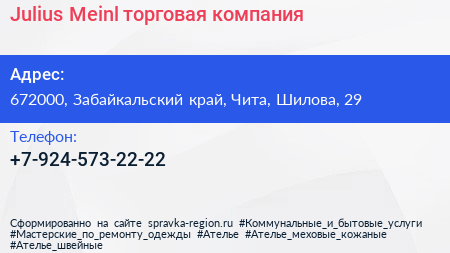 Julius Meinl, торговая компания по адресу 672000, Забайкальский край, Чита, Шилова, 29 в дальнейшем Организация, размещена в следующих категориях: