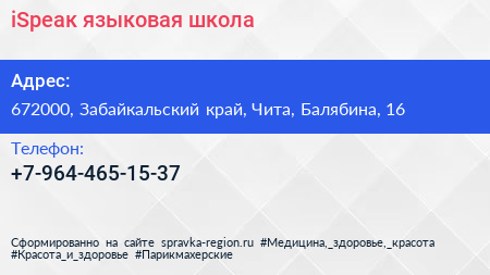 iSpeaк, языковая школа по адресу 672000, Забайкальский край, Чита, Балябина, 16 в дальнейшем Организация, размещена в следующих категориях: