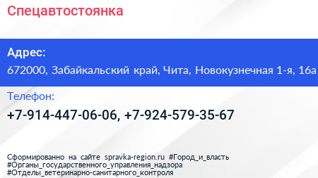 Спецавтостоянка по адресу 672000, Забайкальский край, Чита, Новокузнечная 1-я, 16а в дальнейшем Организация, размещена в следующих категориях: