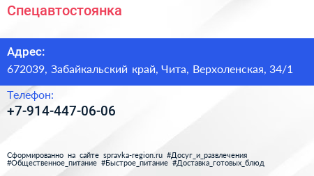 Спецавтостоянка по адресу 672039, Забайкальский край, Чита, Верхоленская, 34/1 в дальнейшем Организация, размещена в следующих категориях: