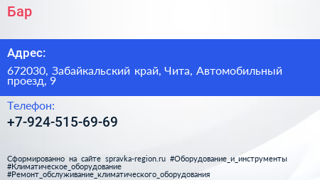Бар по адресу 672030, Забайкальский край, Чита, Автомобильный проезд, 9 в дальнейшем Организация, размещена в следующих категориях:
