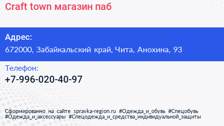 Craft town, магазин-паб по адресу 672000, Забайкальский край, Чита, Анохина, 93 в дальнейшем Организация, размещена в следующих категориях: