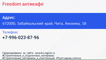 Freedom, антикафе по адресу 672000, Забайкальский край, Чита, Анохина, 18 в дальнейшем Организация, размещена в следующих категориях: