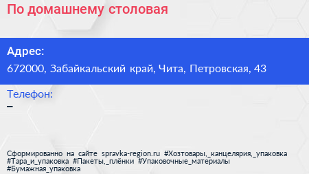 По-домашнему, столовая по адресу 672000, Забайкальский край, Чита, Петровская, 43 в дальнейшем Организация, размещена в следующих категориях: