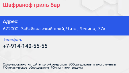 Шафраноф, гриль-бар по адресу 672000, Забайкальский край, Чита, Ленина, 77а в дальнейшем Организация, размещена в следующих категориях: