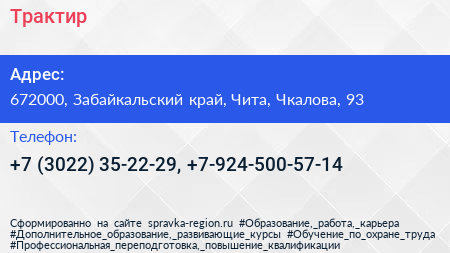 Адрес: Забайкальский край, Чита, Рахова, 41