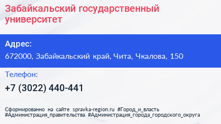 Забайкальский государственный университет по адресу 672000, Забайкальский край, Чита, Чкалова, 150 в дальнейшем Организация, размещена в следующих категориях: