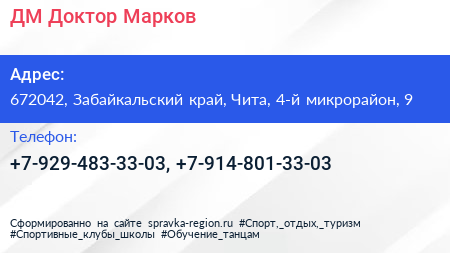 ДМ | Доктор Марков по адресу 672042, Забайкальский край, Чита, 4-й микрорайон, 9 в дальнейшем Организация, размещена в следующих категориях: