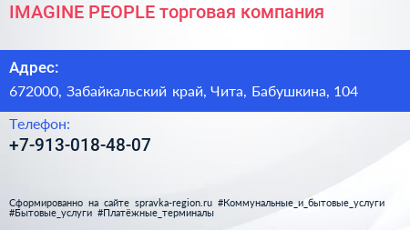 IMAGINE PEOPLE, торговая компания по адресу 672000, Забайкальский край, Чита, Бабушкина, 104 в дальнейшем Организация, размещена в следующих категориях: