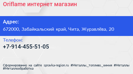 Oriflame, интернет-магазин по адресу 672000, Забайкальский край, Чита, Журавлёва, 20 в дальнейшем Организация, размещена в следующих категориях: