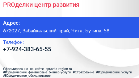 PROделки, центр развития по адресу 672027, Забайкальский край, Чита, Бутина, 58 в дальнейшем Организация, размещена в следующих категориях: