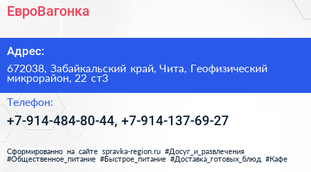Адрес: Забайкальский край, Чита, Геофизический микрорайон, 22