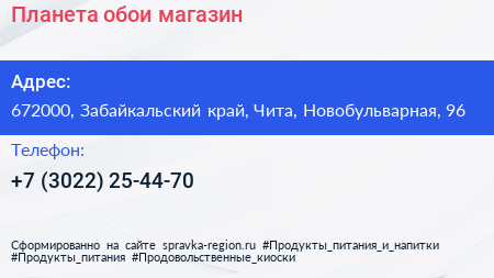 Планета обои, магазин по адресу 672000, Забайкальский край, Чита, Новобульварная, 96 в дальнейшем Организация, размещена в следующих категориях: