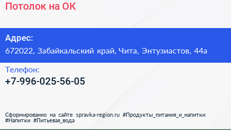 Потолок на ОК по адресу 672022, Забайкальский край, Чита, Энтузиастов, 44а в дальнейшем Организация, размещена в следующих категориях: