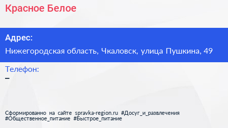 Красное & Белое по адресу Нижегородская область, Чкаловск, улица Пушкина, 49 в дальнейшем Организация, размещена в следующих категориях: