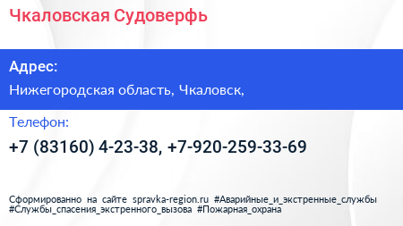 Чкаловская Судоверфь по адресу Нижегородская область, Чкаловск, в дальнейшем Организация, размещена в следующих категориях: