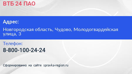 ВТБ 24, ПАО по адресу Новгородская область, Чудово, Молодогвардейская улица, 3 в дальнейшем Организация, размещена в следующих категориях: