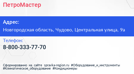 ПетроМастер по адресу Новгородская область, Чудово, Центральная улица, 9а в дальнейшем Организация, размещена в следующих категориях: