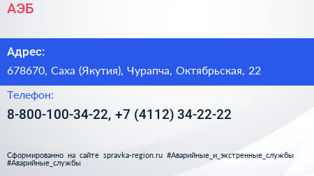 АЭБ по адресу 678670, Саха (Якутия), Чурапча, Октябрьская, 22 в дальнейшем Организация, размещена в следующих категориях:
